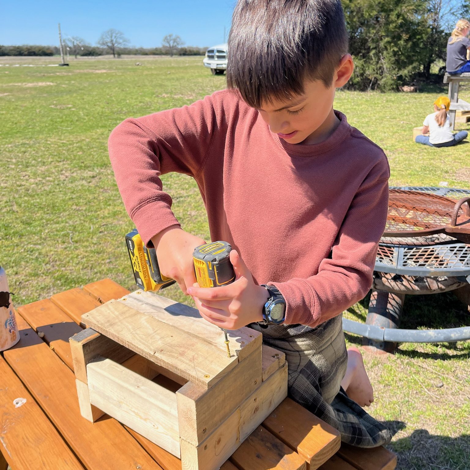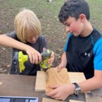 In tinkering class, children and teachers work together to use various tools to create with wood! Learning how to tinker with wood provides a valuable opportunity for children to develop practical skills while nurturing creativity and problem-solving abilities. Working with wood encourages hands-on exploration as they learn to measure, cut, shape, and assemble materials into functional or artistic creations. The process teaches patience, attention to detail, and the importance of trial and error, as mistakes often lead to valuable lessons. Beyond the technical aspects, tinkering with wood helps cultivate a sense of accomplishment and self-reliance, as individuals see their ideas take shape and come to life through their own efforts. We use our tinkering time to build games for our annual Fall Festival, create the set for the annual play and other projects.