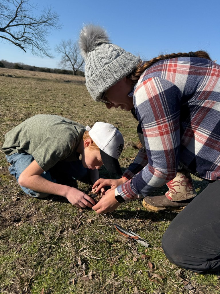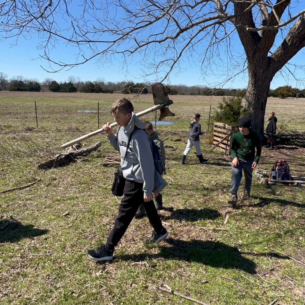 Always hands on and fun! Our science lessons are taught from a biblical worldview integrating faith and reason, helping students understand the natural world as a reflection of God’s creation. We encourage exploration and discovery while fostering a sense of wonder and gratitude for the intricate design of the universe. Some examples of science units we have explored are geology, physical science, simple machines, Texas nature, foraging, and electricity. Here, you can see some students utilize tools and natural elements to create a circuit board during our electricity study.