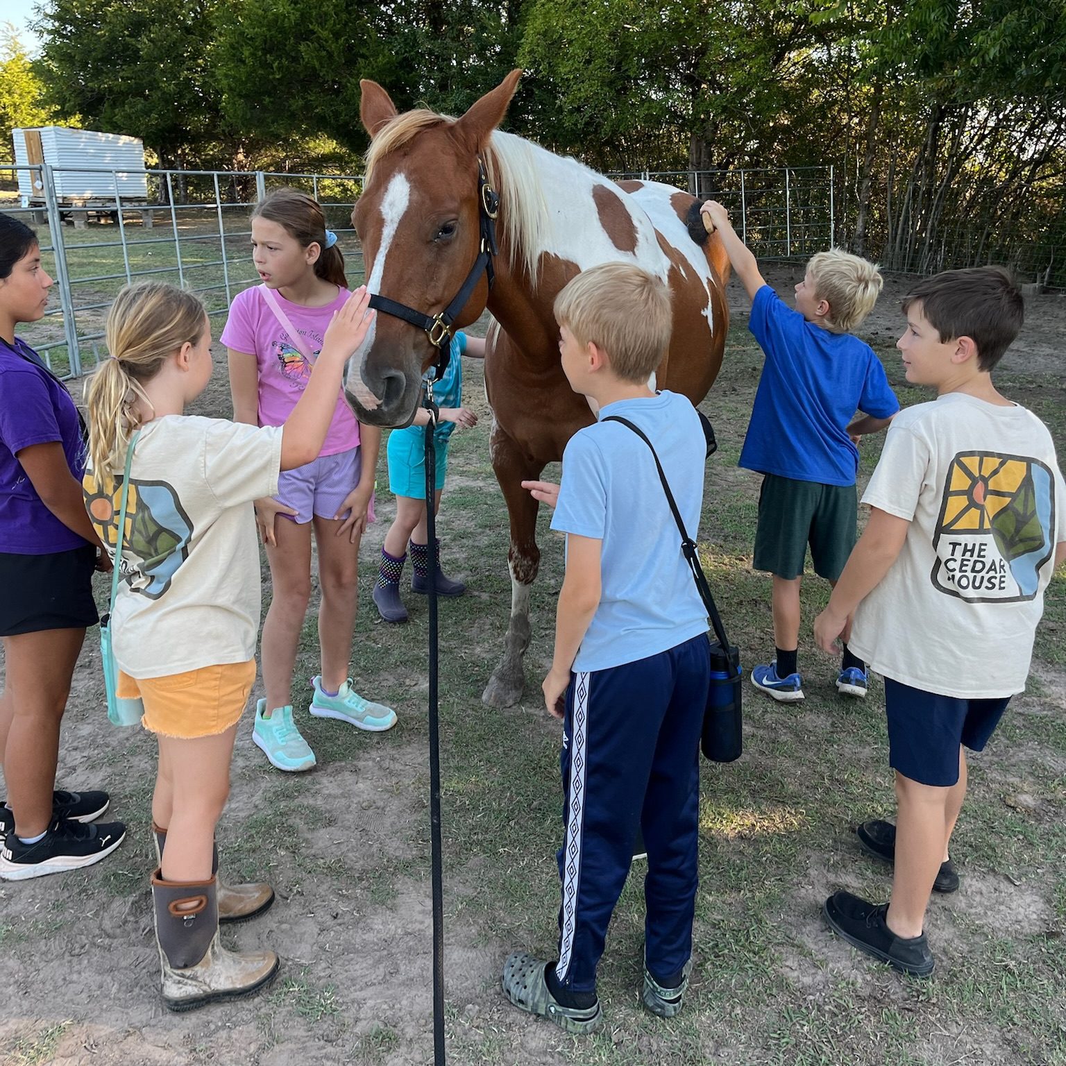 At The Cedar House, children take on the responsibility of caring for God’s creation as they tend to a variety of animals, including horses, pigs, ducks, dairy cows, donkeys, goats, chickens, and guinea fowl. They learn the value of hard work and compassion while feeding, grooming, and caring for the animals each week. Additionally, they tend to the garden, learning the importance of nurturing the earth and growing food. This hands-on experience teaches them not only practical skills but also a deep respect for the natural world. Students often tell us this is their favorite part of the day!