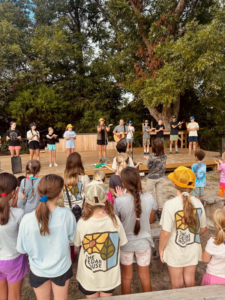 Each year The Cedar House puts on a full theater production. Learning theater helps children build confidence, improve communication skills, and foster creativity. It also teaches them valuable life skills such as teamwork, empathy, and problem-solving. By engaging in theater, children gain a deeper understanding of themselves and the world around them while having fun and expressing their unique voices. Our program has an added bonus to doing theather in nature at our outdoor stage. Pictured here is a group from last year’s production of The Lion, The Witch, and The Wardrobe. Other past productions include A Midsummers Night Dream, Wingfeather Saga, Parables in the Pasture, Jonah the Musical and Alice in Wonderland.